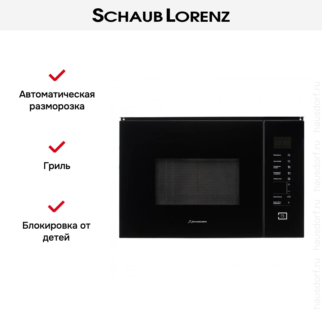 Количество режимов в данной модели Шауб Лоренц: 5 шт. Для обработки продуктов и готовых блюд используются следующие виды нагрева: Микроволны, Гриль, Автоматический режим разморозки, Автоматический режим приготовления. Выберите гриль, чтобы получить поджаристую корочку на мясе или рыбе. Тип гриля в этой микроволновке кварцевый. Отдельная опция для размораживания продуктов и полуфабрикатов облегчает жизнь — не нужно самостоятельно настраивать параметры. Автоматические программы для приготовления добавлены производителем также для упрощения работы.