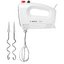 Обратите внимание на цвет миксера Бош — белый — он может стать как гармоничным дополнением кухонной обстановки, так и ярким акцентом. В комплекте с самим прибором идут дополнительные элементы: венчик для взбивания, крюки для теста.