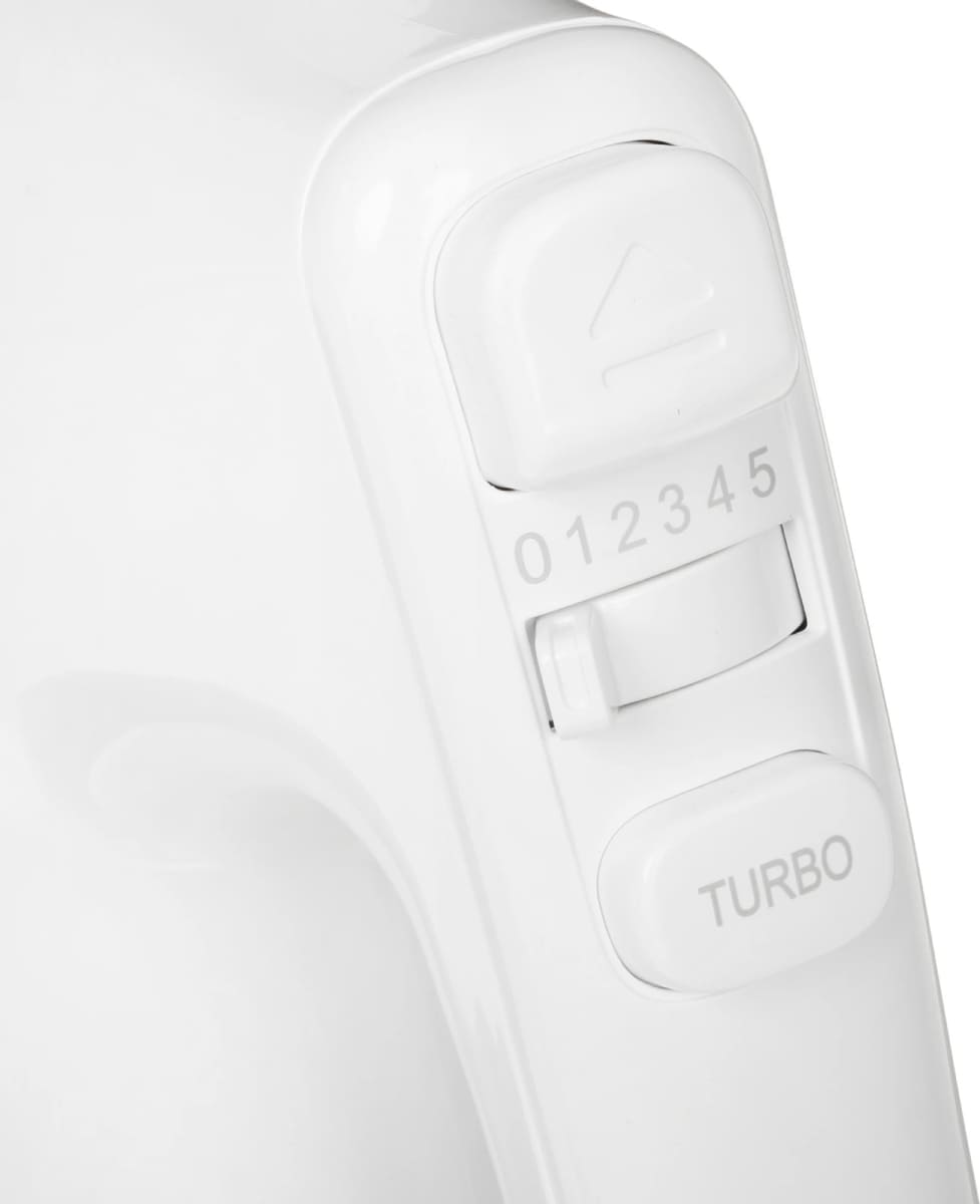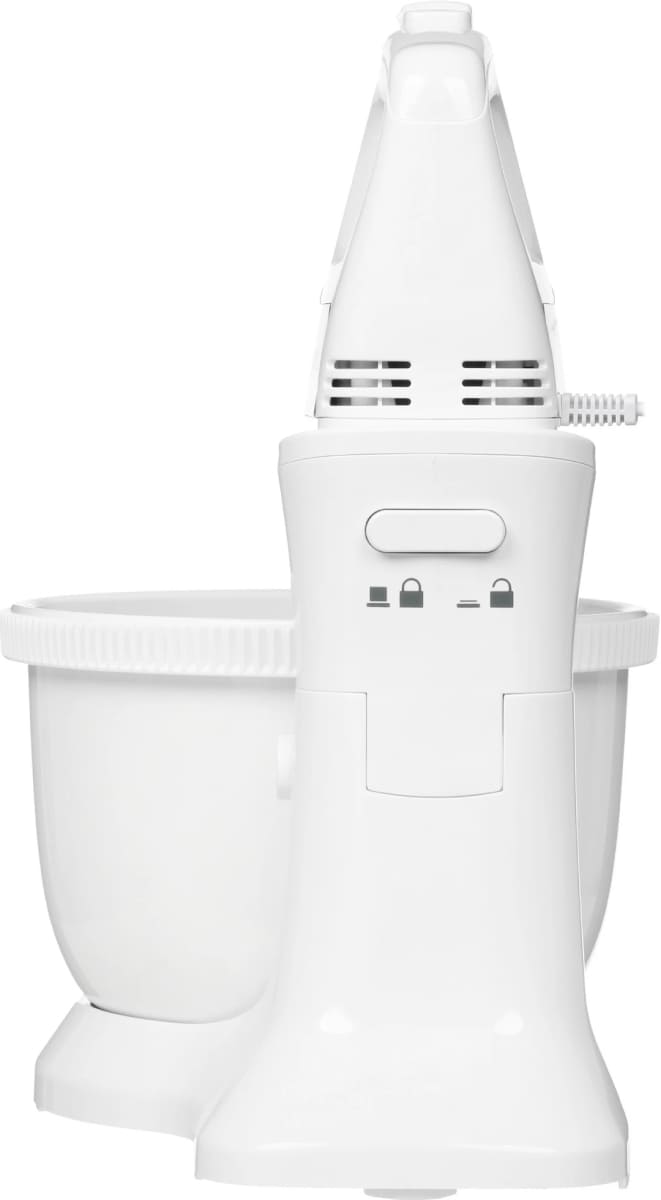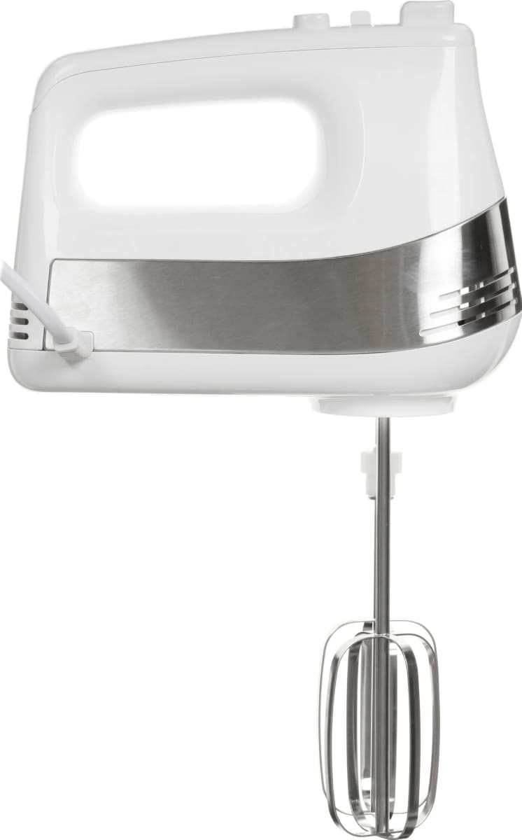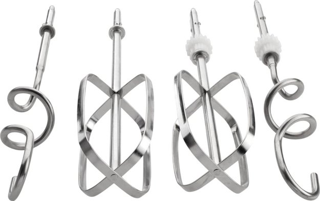 Обратите внимание на цвет миксера Горение — белый — он может стать как гармоничным дополнением кухонной обстановки, так и ярким акцентом. В комплекте с самим прибором идут дополнительные элементы: венчик для взбивания, крюки для теста.