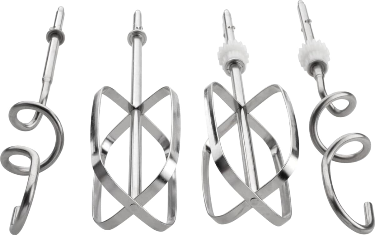 Крюки для теста представляют собой спираль, изготовленную из нержавеющей стали, с крюком на конце и используются для смешивания теста разной консистенции, от жидкого до плотного, а также для приготовления густых соусов или кремов. При использовании крюков получается однородная, но не взбитая смесь.