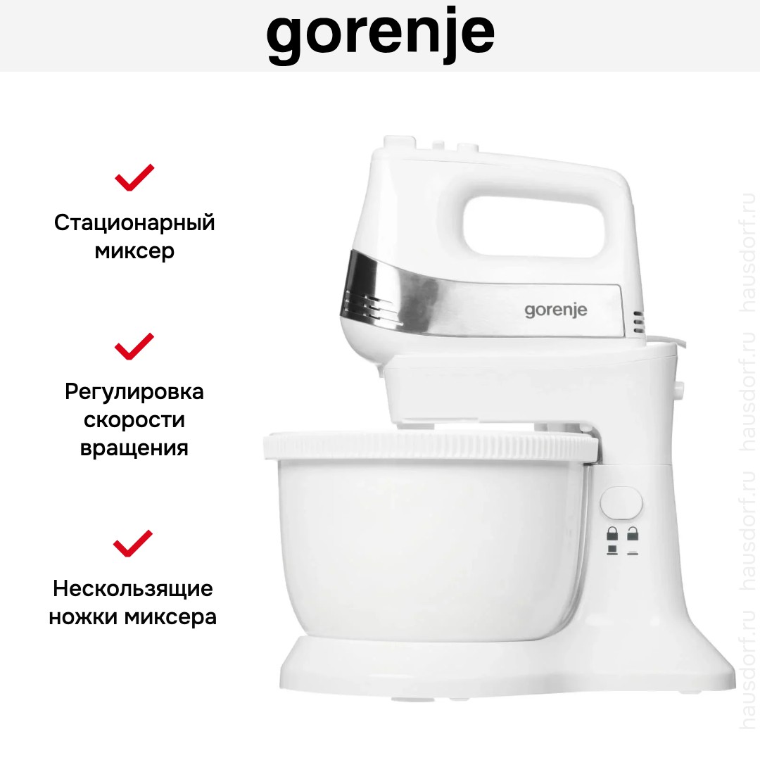 Стационарный миксер Gorenje обладает высокой мощностью, работает автономно после выбора программ и справляется даже с густыми и вязкими текстурами. Доступное количество скоростей — 5 шт.