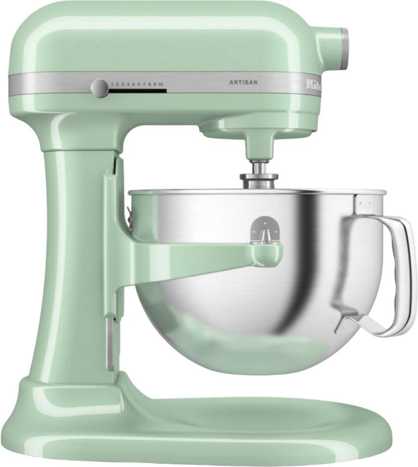 Стационарный миксер KitchenAid обладает высокой мощностью, работает автономно после выбора программ и справляется даже с густыми и вязкими текстурами. Оснащен технологией планетарного вращения: насадка движется не только по кругу чаши, но и вокруг своей оси, что сокращает время взбивания и гарантирует более однородный результат. Доступное количество скоростей — 11 шт.