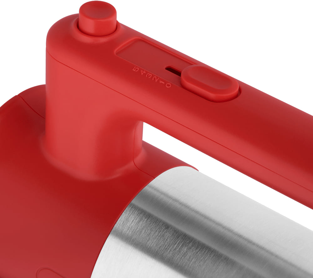 Обратите внимание на цвет миксера Маунфилд — красный — он может стать как гармоничным дополнением кухонной обстановки, так и ярким акцентом. В комплекте с самим прибором идут дополнительные элементы: венчик для взбивания, крюки для теста.