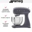 Миксер Smeg SMF03GREU — стационарная модель в металлическом корпусе оригинального оттенка «серый шифер». Благодаря высокой мощности 800 Вт и планетарному вращению насадки и головки, в которую она устанавливается, он справляется с приготовлением даже густого теста. Вместительная чаша объемом 4,8 литра изготовлена из нержавеющей стали. В комплект входят 3 насадки — венчик для взбивания, крюки для теста, лопатка для взбивания плотных продуктов. Все насадки и шестеренки миксера Смег SMF03GREU также изготовлены из нержавеющей стали.