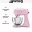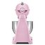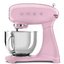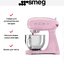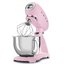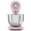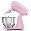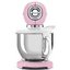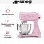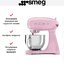 Обратите внимание на цвет миксера Смег — розовый — он может стать как гармоничным дополнением кухонной обстановки, так и ярким акцентом. В комплекте с самим прибором идут дополнительные элементы: венчик для взбивания, защитная крышка на чашу, крюки для теста, насадка для взбивания плотных продуктов. Вы можете приобрести и установить другие насадки, для них создано специальное гнездо.