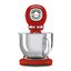 Обратите внимание на цвет миксера Смег — красный — он может стать как гармоничным дополнением кухонной обстановки, так и ярким акцентом. В комплекте с самим прибором идут дополнительные элементы: венчик для взбивания, защитная крышка на чашу, крюки для теста, лопатка с гибким ребром. Вы можете приобрести и установить другие насадки, для них создано специальное гнездо.