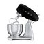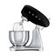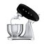 Обратите внимание на цвет миксера Смег — черный — он может стать как гармоничным дополнением кухонной обстановки, так и ярким акцентом. В комплекте с самим прибором идут дополнительные элементы: венчик для взбивания, защитная крышка на чашу, крюки для теста.