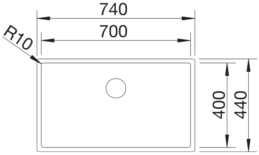 Внутренний объем представлен одной просторной чашей с размерами 70×40 см и округлением радиусом 1 см для аккуратного сочетания строгих линий и практичности. Установка под столешницу делает край незаметным, что упрощает уборку и визуально расширяет рабочую поверхность. Монтажный вырез 70×40 см и комплектные фиксирующие зажимы облегчают подготовку и быструю установку в столешницу. Диаметр сливного отверстия 3,5″ соответствует стандарту и подходит для подключения измельчителей пищевых отходов.