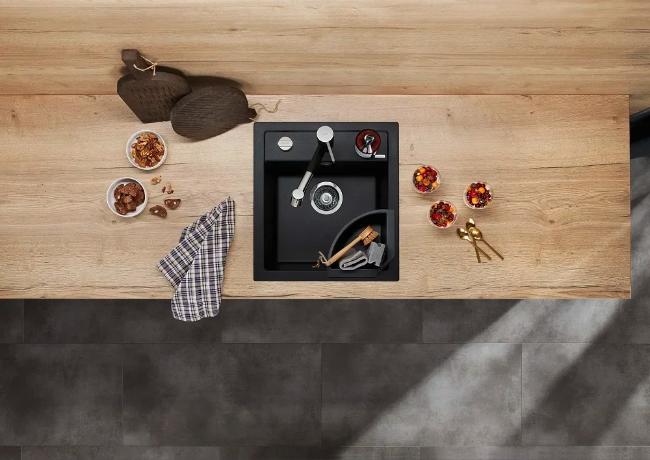 Накладная мойка Blanco — отличный выбор для тех, кто хочет создать гармоничное пространство с удобной сантехникой. простой в установке. Преимущество такой конструкции: легко подобрать практически к любой кухне и не придется демонтировать вместе с тумбой при ремонте или перестановке остальной мебели. Данная модель имеет стандартную форму, поэтому подходит большинству пользователей. Устанавливается над столешницей: это самый простой способ монтажа, зачастую с ним можно справиться даже без специалистов, главное — правильно рассчитать размеры ниши.