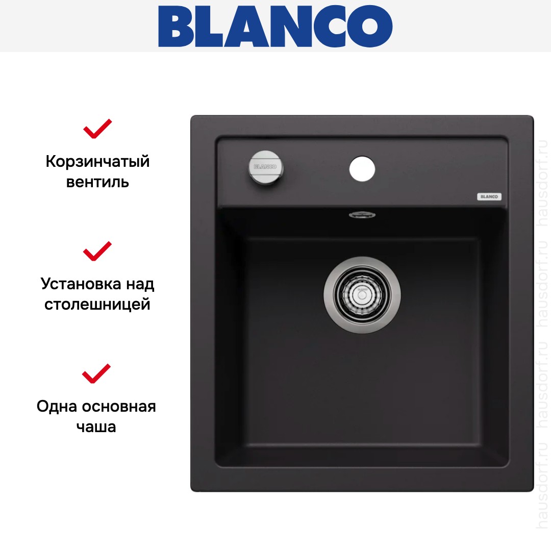 Мойка BLANCO DALAGO 45 Silgranit черный, клапан-автомат в Краснодаре