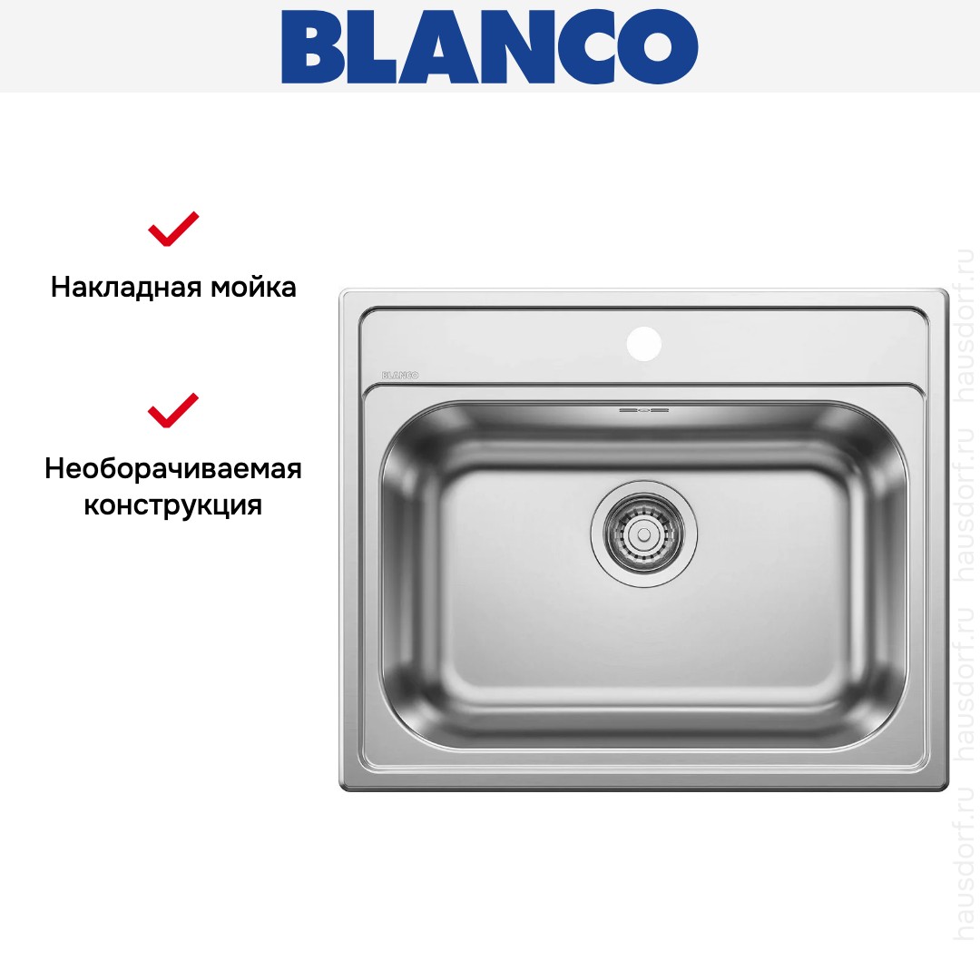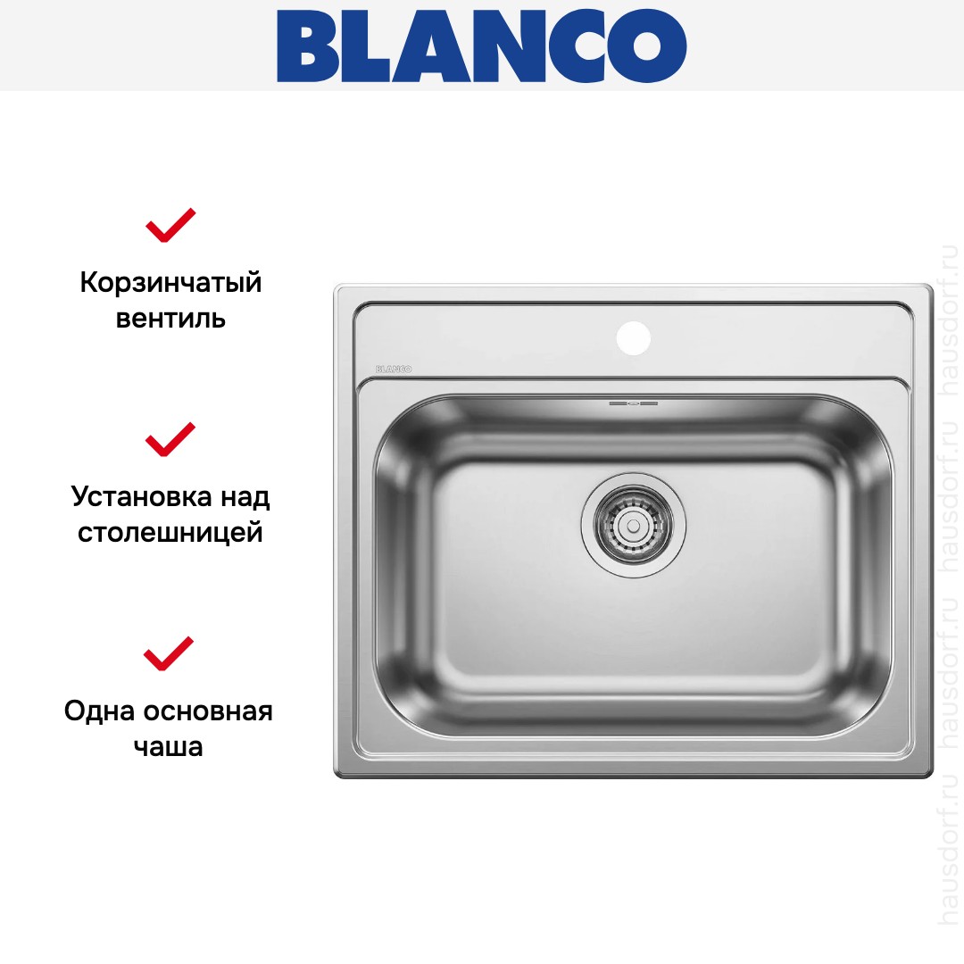 Накладная мойка Blanco — отличный выбор для тех, кто хочет создать гармоничное пространство с удобной сантехникой. простой в установке. Преимущество такой конструкции: легко подобрать практически к любой кухне и не придется демонтировать вместе с тумбой при ремонте или перестановке остальной мебели. Данная модель имеет стандартную форму, поэтому подходит большинству пользователей. Устанавливается над столешницей: это самый простой способ монтажа, зачастую с ним можно справиться даже без специалистов, главное — правильно рассчитать размеры ниши.