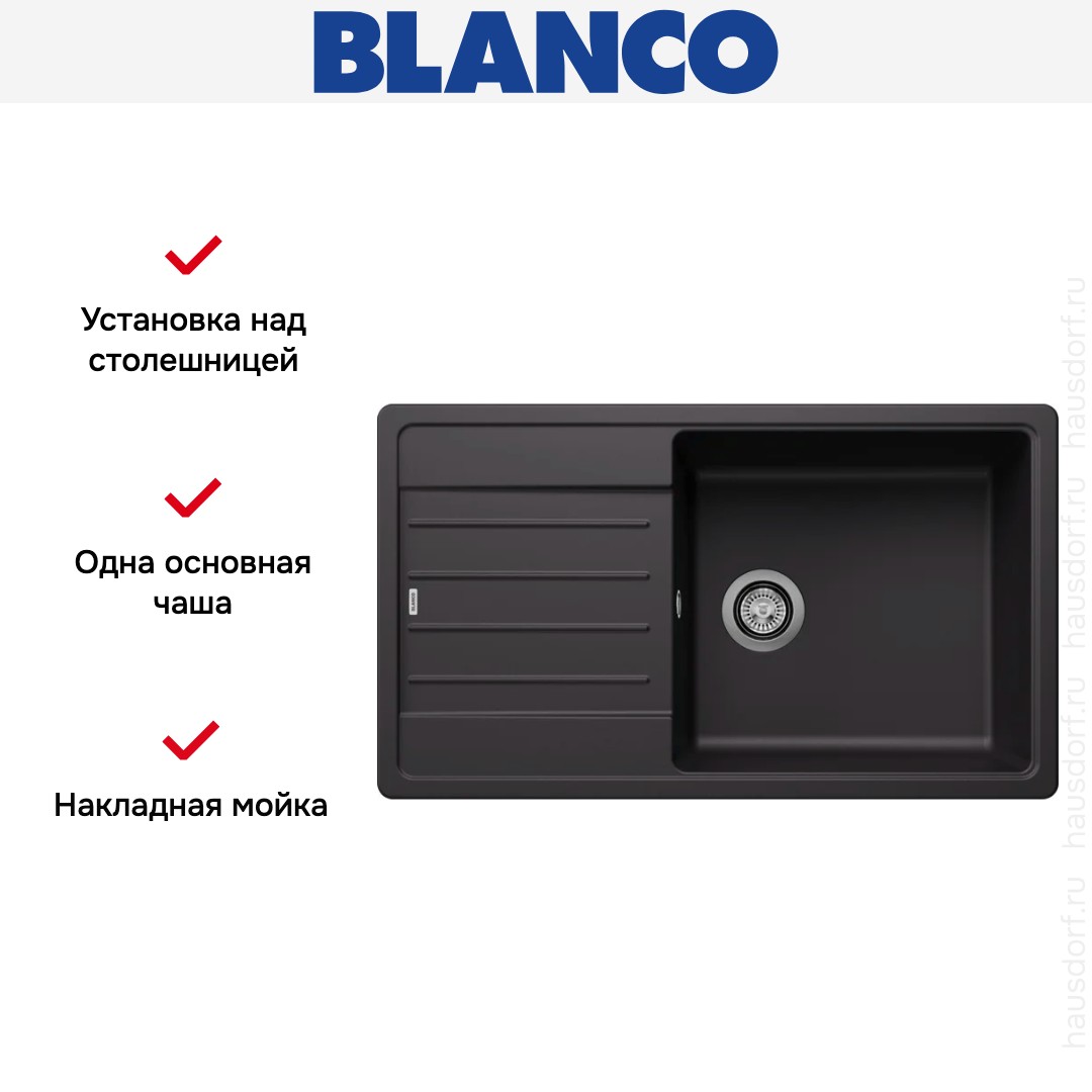 Накладная мойка Blanco — отличный выбор для тех, кто хочет создать гармоничное пространство с удобной сантехникой. простой в установке. Преимущество такой конструкции: легко подобрать практически к любой кухне и не придется демонтировать вместе с тумбой при ремонте или перестановке остальной мебели. Данная модель имеет стандартную форму, поэтому подходит большинству пользователей. Устанавливается над столешницей: это самый простой способ монтажа, зачастую с ним можно справиться даже без специалистов, главное — правильно рассчитать размеры ниши.