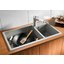 Эффектная кухонная мойка с двумя чашами. Модель из коллекции Blanco Metra подойдет для просторной кухни благодаря ширине 90 см. Универсальный дизайн и прямоугольная форма отлично выглядят в современной или классической кухне. Благодаря скругленным углам в ней не задерживается грязь. Так же универсален набор из 10 цветов — от белого и жасминового до цвета кофе, антрацит и алюметаллик. Мойка оснащена просторной, глубокой основной чашей и функциональной дополнительной чашей для мытья большой посуды или овощей. Широкая площадка позволяет удобно размещать даже несколько дополнительных аксессуаров. Модель изготовлена из запатентованного искусственного камня Silgranit PuraDur II, идеально гладкого и гигиеничного. Материал отличается высокой прочностью, поэтому появление царапин и повреждений исключено. Грязеотталкивающее покрытие гарантирует простоту в уходе. Имеется корзинчатый вентиль, который выполняет фильтрующую функцию, задерживая крупные частицы и не допуская их попадания в канализационную систему. Корзина вентиля легко извлекается, что позволяет без затруднений удалить оставшийся на ней мусор. Возможна установка клапана-автомата с отводной арматурой, который сливает воду путем нажатия кнопки на бортике, так что не нужно пачкать руки. Дополнительно можно приобрести разделочные доски, коландеры и решетки на раковину. Модель допускает установку под столешницу для более удобной очистки.