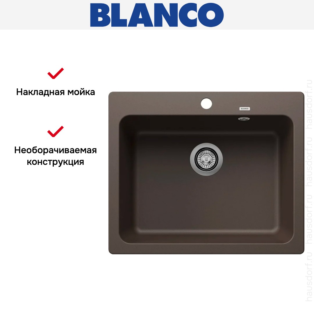Накладная мойка Blanco — отличный выбор для тех, кто хочет создать гармоничное пространство с удобной сантехникой. простой в установке. Преимущество такой конструкции: легко подобрать практически к любой кухне и не придется демонтировать вместе с тумбой при ремонте или перестановке остальной мебели. Данная модель имеет стандартную форму, поэтому подходит большинству пользователей. Устанавливается над столешницей: это самый простой способ монтажа, зачастую с ним можно справиться даже без специалистов, главное — правильно рассчитать размеры ниши.