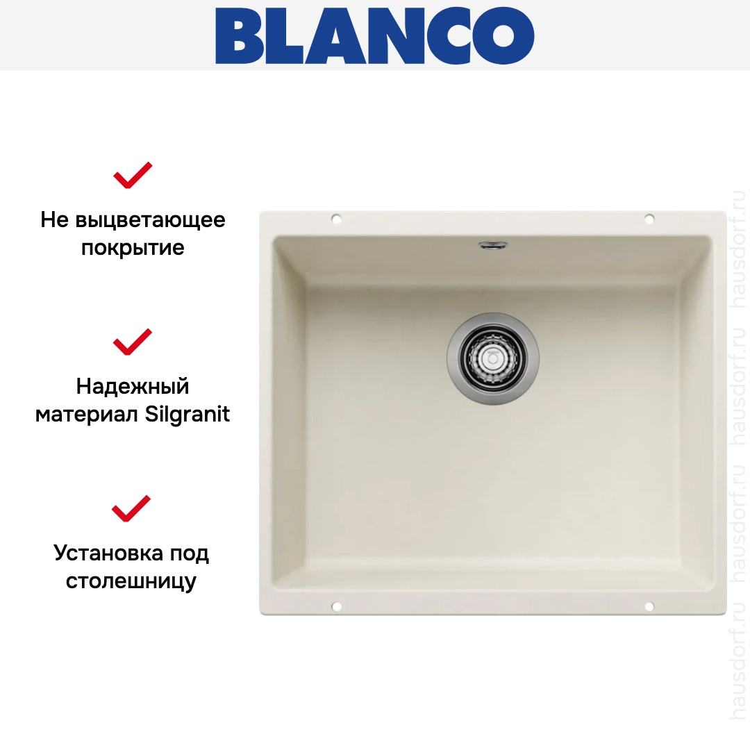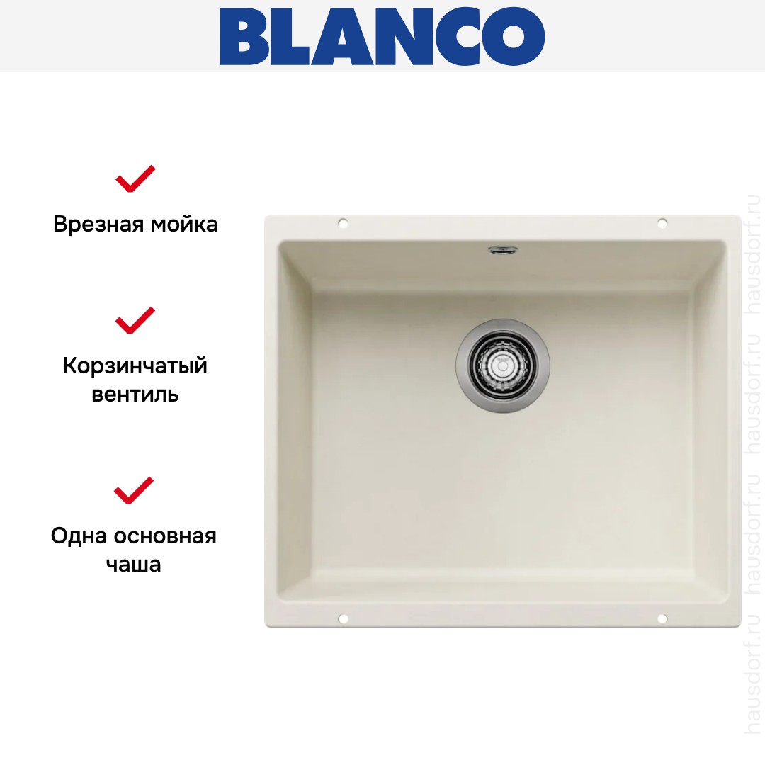 Обратите внимание на дизайнерские отличия мойки Бланко, которые помогут в создании идеальной кухни в вашем доме. Она выполнена в цвете мягкий белый. Основной материал — Silgranit, он гарантирует надежность и долгие годы службы без повреждений.