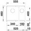 Габариты изделия 55,5×46 см подходят для баз шириной от 60 см, а монтажное отверстие 52,5×40 см и радиус скругления 1 см упрощают подготовку рабочей поверхности. Конструкция необорачиваемая, поэтому важно учитывать расположение чаш при планировании кухонного пространства. Основная чаша размером 34×40 см и глубиной 19 см позволяет комфортно мыть кастрюли и сковороды, не допуская разбрызгивания воды. Дополнительная чашка 16×40 см глубиной 13 см отлично подходит для предварительной обработки продуктов и слива воды.