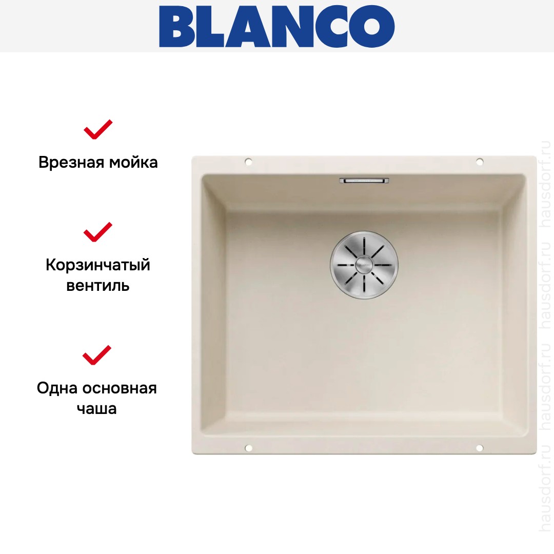 Мойка BLANCO SUBLINE 500-U Silgranit мягкий белый в Краснодаре