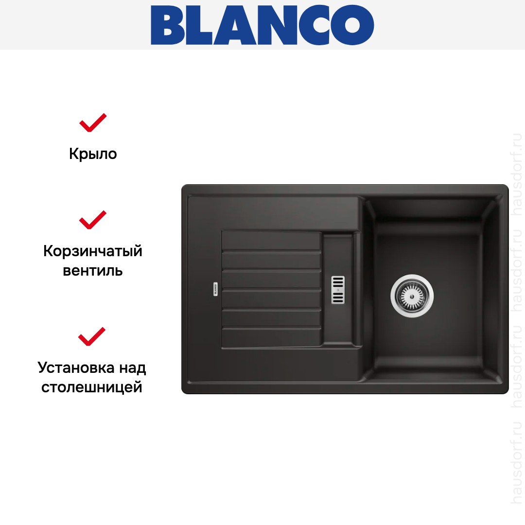 Мойка BLANCO ZIA 45 S Silgranit черный в Краснодаре
