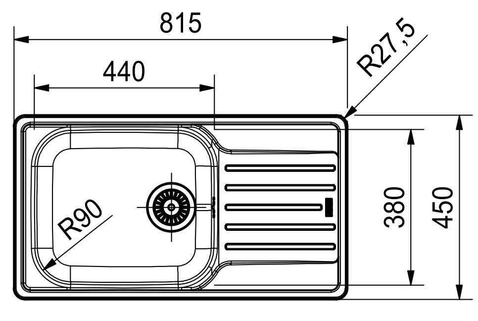 Особенностью модели является выразительный радиус скругления внутренней чаши, равный 9 см, что придаёт изделию мягкую, почти органичную форму и значительно упрощает уход за поверхностью. Внешние кромки закруглены на 2,75 см, что придаёт дизайну утончённость и гармоничность. Мойка изготовлена из высококачественной нержавеющей стали, устойчивой к коррозии, царапинам и перепадам температур. Матовая текстура эффективно скрывает мелкие следы эксплуатации, сохраняя безупречный внешний вид даже при регулярном использовании.
