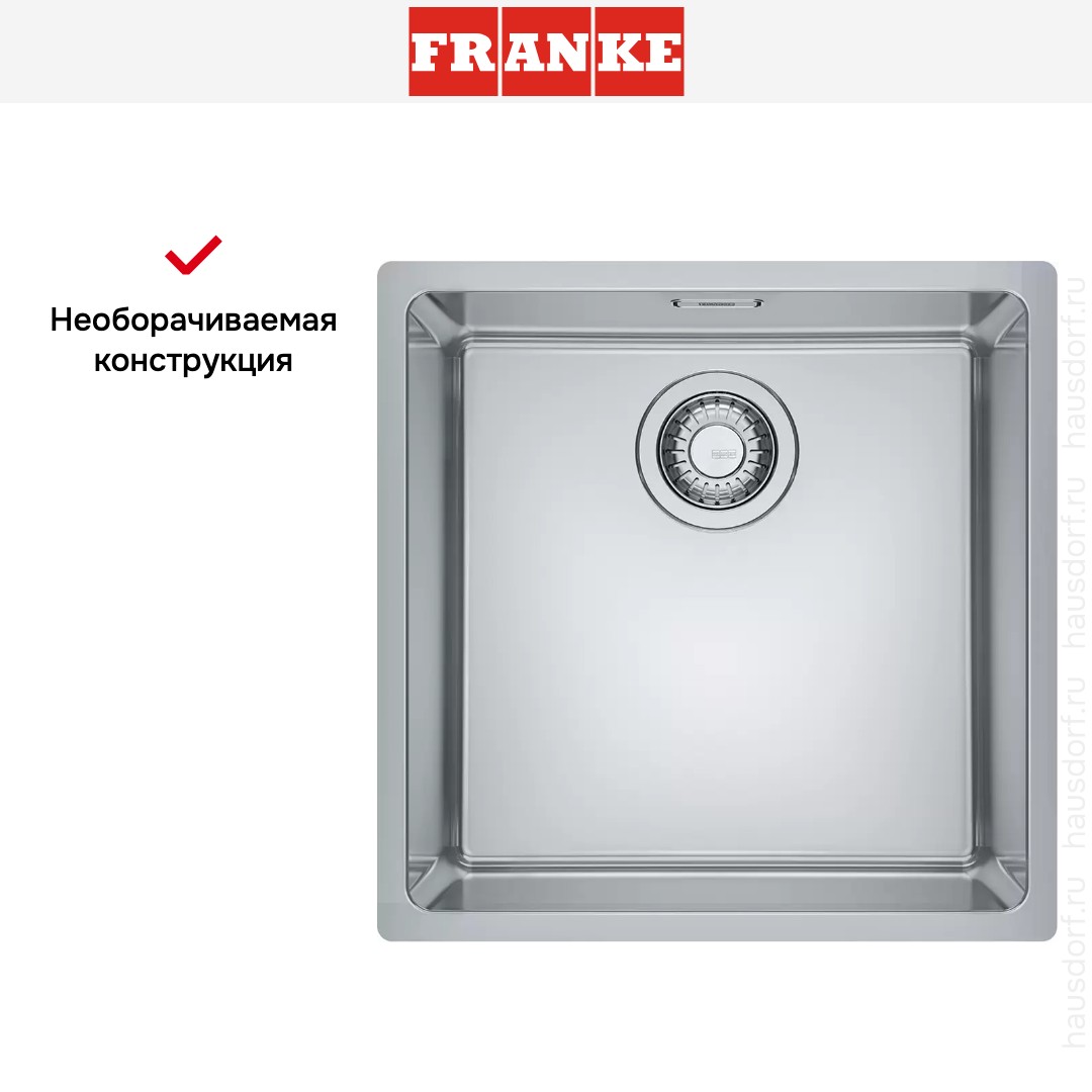 Обратите внимание на дизайнерские отличия мойки Франке, которые помогут в создании идеальной кухни в вашем доме. Она выполнена в цвете нержавеющая сталь. Основной материал — нержавеющая сталь, он гарантирует надежность и долгие годы службы без повреждений.