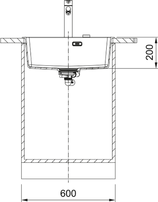 Глубина чаши тщательно продумана: она обеспечивает удобство при выполнении повседневных задач — от мытья посуды до подготовки продуктов — и одновременно снижает риск разбрызгивания жидкости. Все контуры изделия смягчены: внутренние углы имеют радиус скругления 2 см, наружные — 1,5 см, как и у шаблона для выреза, что придаёт конструкции плавность линий и облегчает очистку.