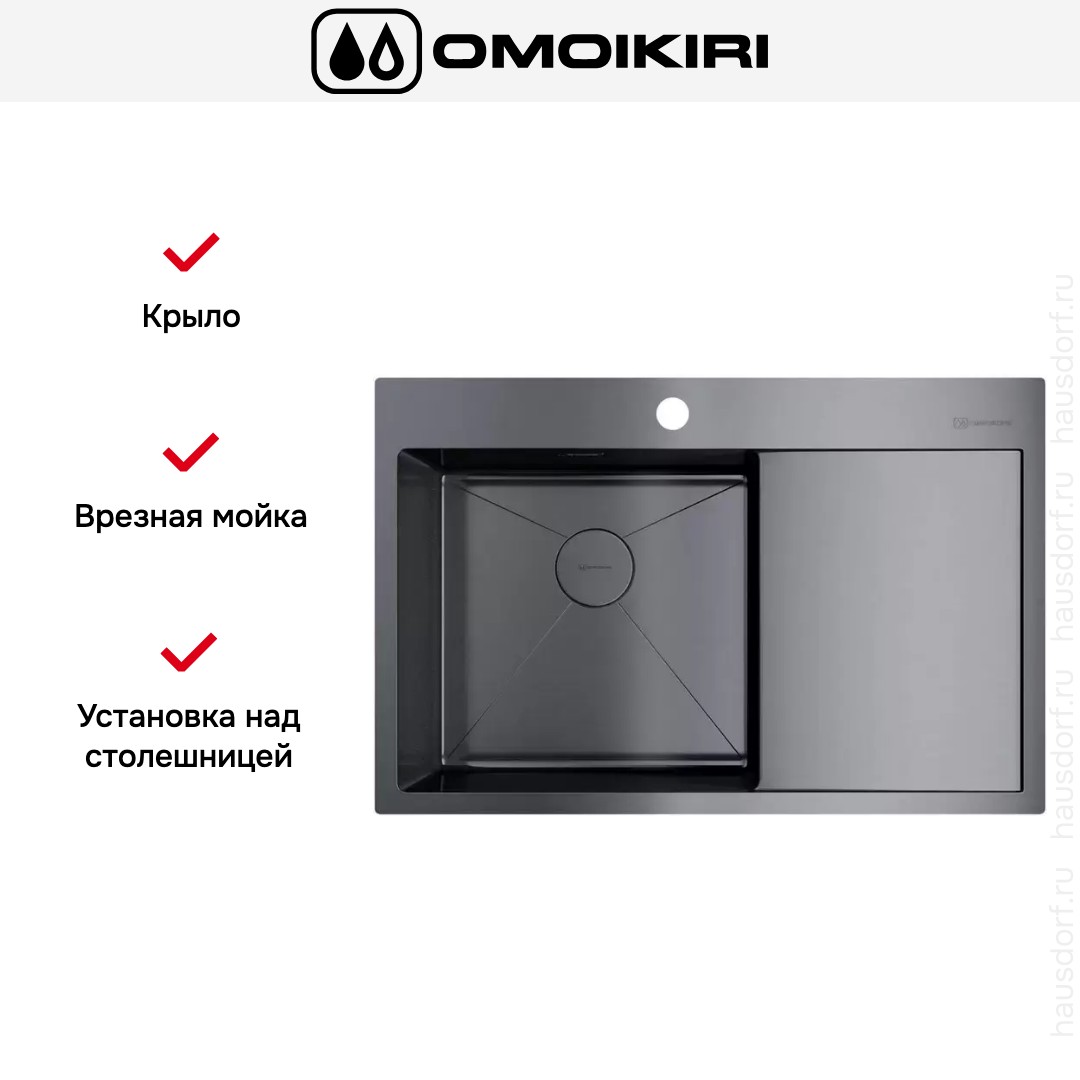 Мойка Omoikiri Akisame 78 GM L крыло справа в Краснодаре