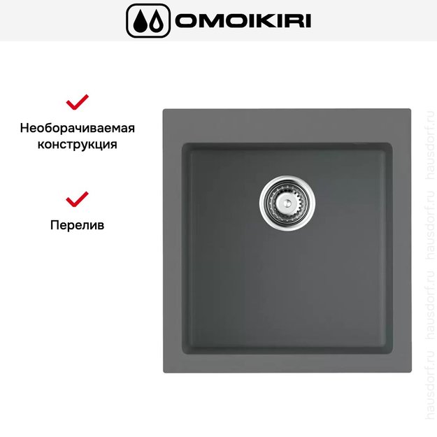 Накладная мойка Omoikiri — отличный выбор для тех, кто хочет создать гармоничное пространство с удобной сантехникой. простой в установке. Преимущество такой конструкции: легко подобрать практически к любой кухне и не придется демонтировать вместе с тумбой при ремонте или перестановке остальной мебели. Данная модель имеет стандартную форму, поэтому подходит большинству пользователей. Устанавливается над столешницей: это самый простой способ монтажа, зачастую с ним можно справиться даже без специалистов, главное — правильно рассчитать размеры ниши.