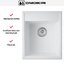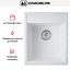 Материал композитный на основе натурального камня — ArtGranit, который прост в очистке, не подвержен воздействиям высоких температур, не царапается и сохраняет первоначальный оттенок. Заготовка формируется методом литья, толщина стенок достигает 10 мм. Такое исполнение производит впечатление монолитности и уверенной посадки на столешницу. Масса 4,5 кг удобна для переноски и монтажа, при этом изделие ощущается основательным. Однотонная палитра белого цвета поддерживает визуальную целостность гарнитура.