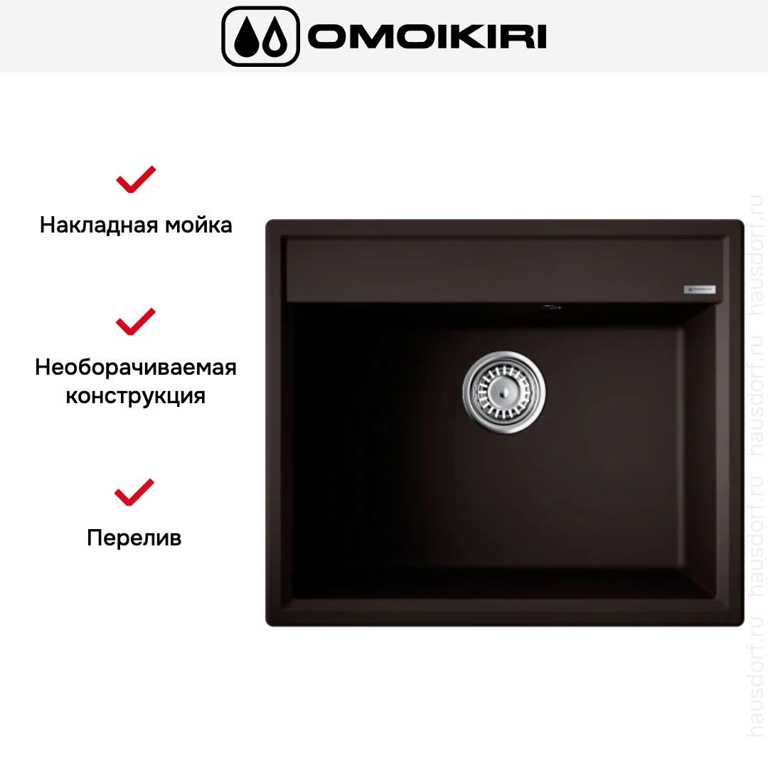 Мойка Omoikiri Daisen 60 ES — стильное решение для современной кухни с компактными габаритами 60×51 см. Это накладной прямоугольный вариант, который устанавливается сверху столешницы и сохраняет максимум пространства в рабочей зоне. За счёт строгих линий и тёплого цвета эспрессо изделие прекрасно впишется в интерьеры как в тёмной, так и контрастной светлой отделке.