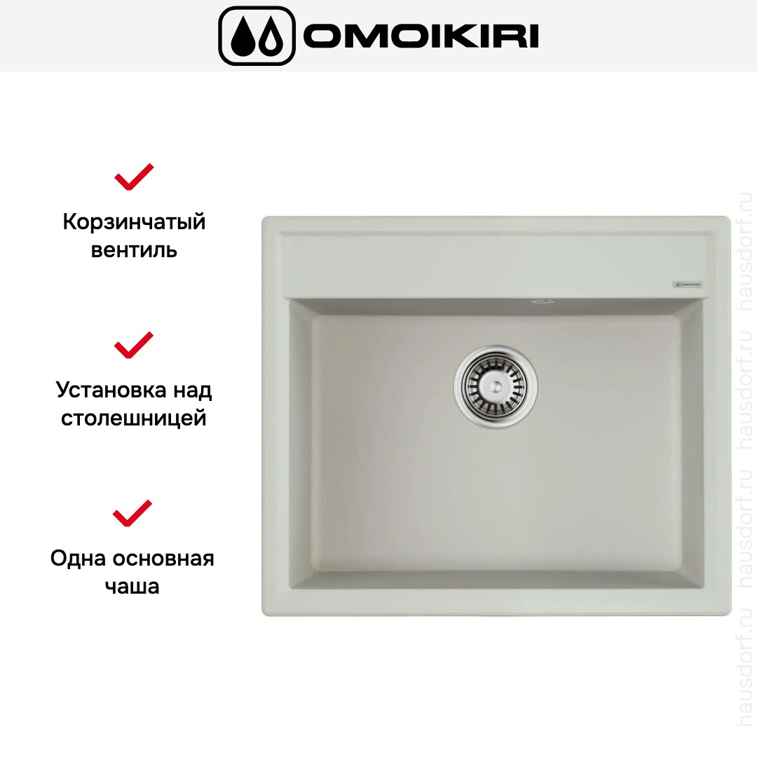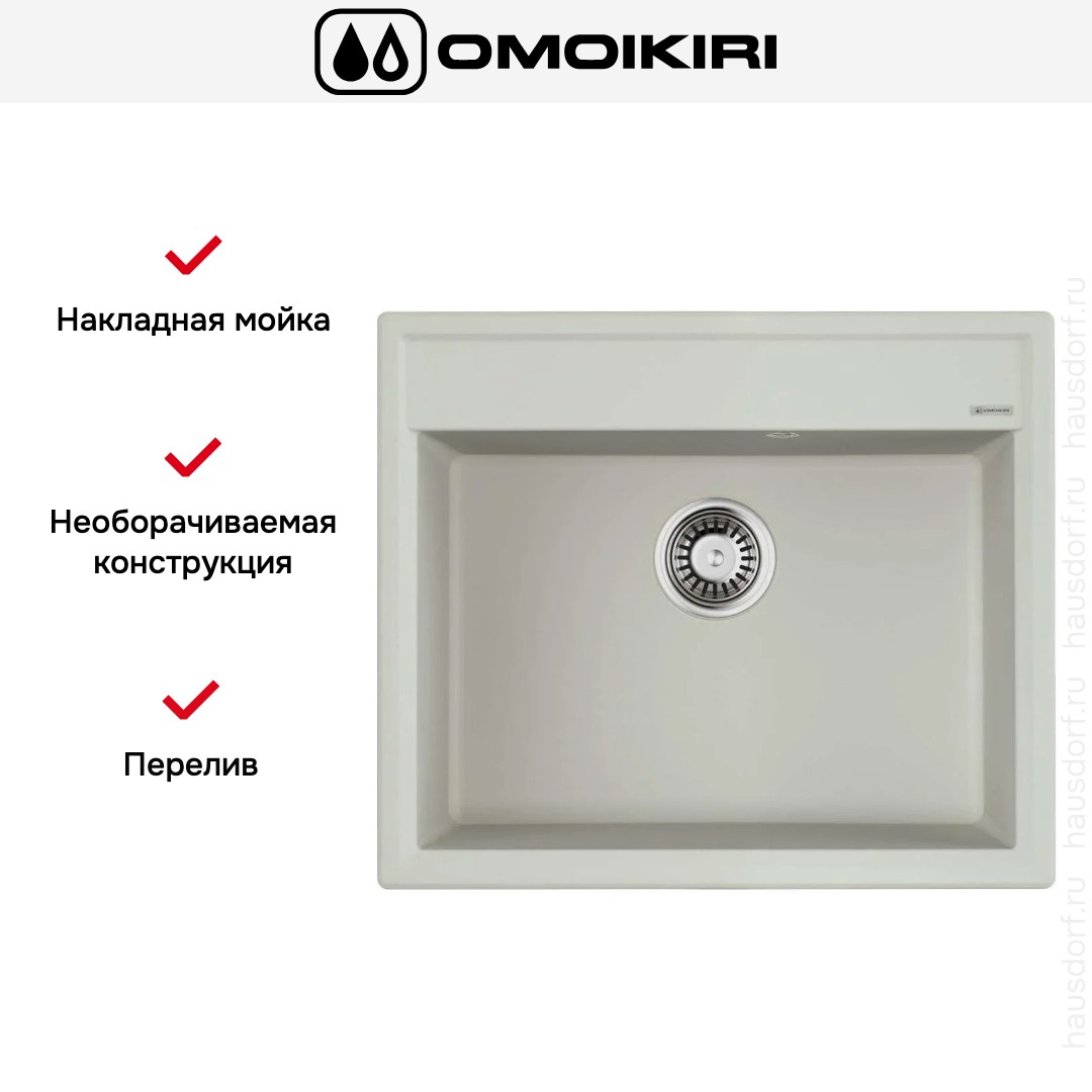 Накладная мойка Omoikiri — отличный выбор для тех, кто хочет создать гармоничное пространство с удобной сантехникой. простой в установке. Преимущество такой конструкции: легко подобрать практически к любой кухне и не придется демонтировать вместе с тумбой при ремонте или перестановке остальной мебели. Данная модель имеет стандартную форму, поэтому подходит большинству пользователей. Устанавливается над столешницей: это самый простой способ монтажа, зачастую с ним можно справиться даже без специалистов, главное — правильно рассчитать размеры ниши.