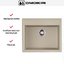 Материал — ArtGranit, сформированный методом литья, толщина стенки составляет 10 мм. Это композит, выполняемый путём заливки, в результате чего получается однородная структура и равномерная поверхность по всей площади. Такие технологические особенности обеспечивают стабильную форму и плавные переходы в чаше и по периметру, а бежевый оттенок придаёт мягкость общему виду без резких контрастов.