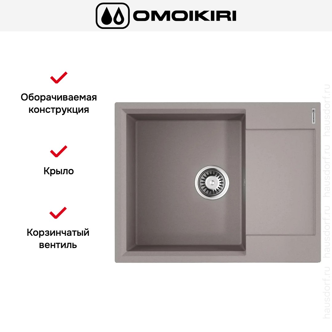 Обратите внимание на дизайнерские отличия мойки Омойкири, которые помогут в создании идеальной кухни в вашем доме. Она выполнена в цвете Серый Ленинград. Крыло, расположенное слева или справа, является дополнительным рабочим пространством, на котором можно сушить посуду, разделывать мясо и нарезать овощи.