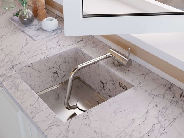 Для создания бесшовного дизайна кухни или ванной можно интегрировать мойку в столешницу так, чтобы создавалось ощущение единого пространства. Такие модели устанавливаются под столешницу и сделаны из такого же материала. Встроить подобную мойку в уже готовую кухню сложно, обычно их выбирают на этапе продумывания интерьера.