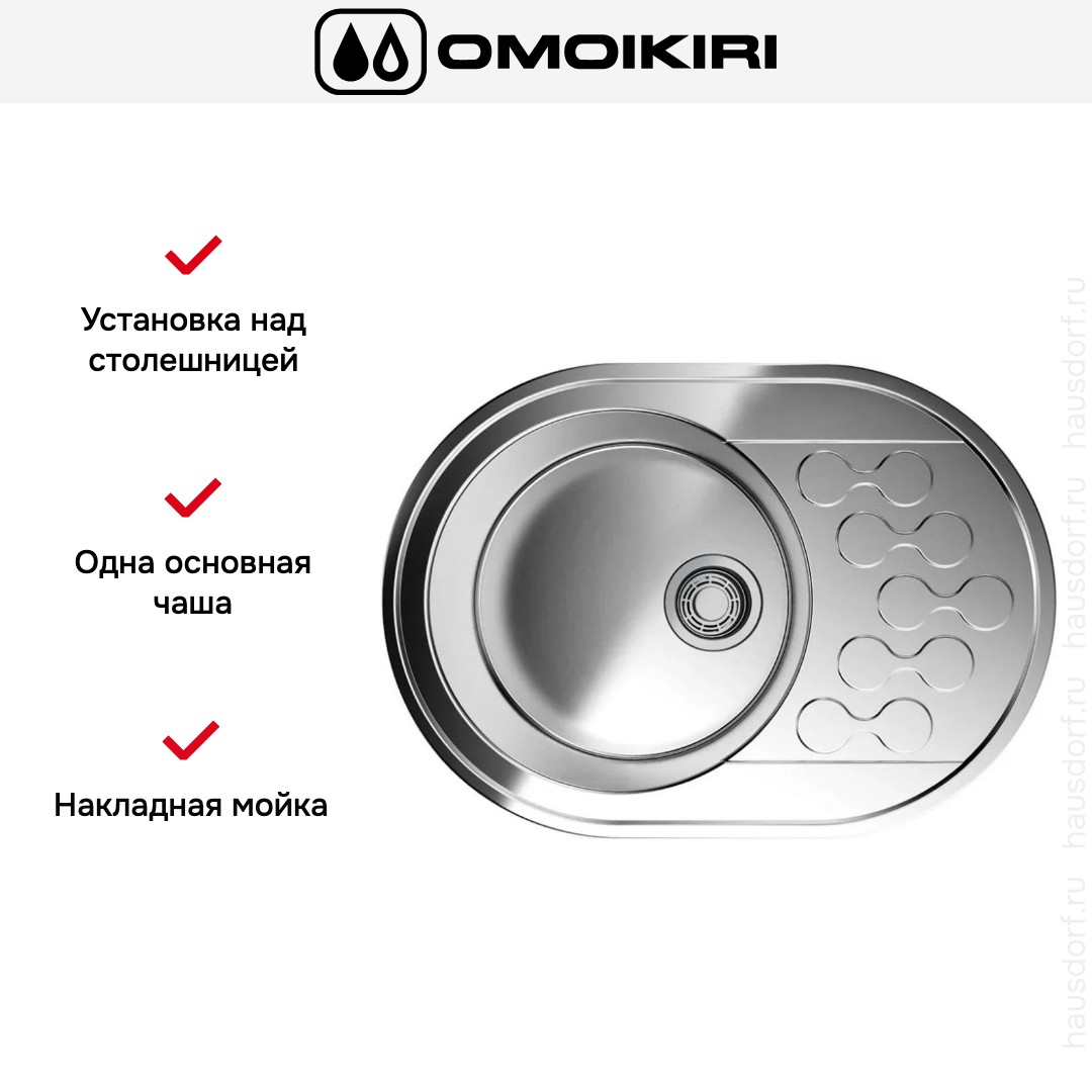 Выходит в оформлении из нержавеющей стали, выглядит сдержанно и функционально: овальная чашеобразная форма плавно переходит в рабочее крыло, которое можно расположить слева или справа. Габариты 65×46 см делают конструкцию компактной, при этом сама мойка сохраняет ощущение цельной металлической поверхности благодаря цельнотянутому методу производства. Вес изделия — 3.35 кг, его линия не перегружена лишними деталями, что облегчает интеграцию в разную кухонную мебель.