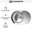 Материал — нержавеющая сталь. Это металлический сплав, основой которого служит сталь с легирующими добавками, формирующими устойчивую поверхность, способную противостоять внешним воздействиям и сохранять однородный металлический оттенок. Применённый способ изготовления — цельнотянутая технология — обеспечивает монолитность чаши и плавные переходы без видимых швов. Поверхность легко поддаётся очистке, а комплектующие (уплотнительная лента, сифон, корзинчатый вентиль) рассчитаны на долговременную эксплуатацию в условиях кухни.