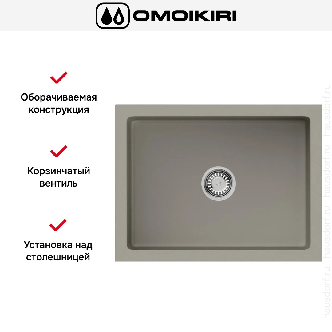 Мойка OMOIKIRI Mikura 61-CC — модульная прямоугольная конструкция в тёплом капучино оттенке, сочетающая утончённый дизайн и практичность. Это изделие разработано для установки над столешницей и органично вписывается в современные и классические интерьеры. Габариты 61×46 см делают её компактной, но вместительной, а цвет добавляет кухне мягкости и уютной визуальной теплоты.