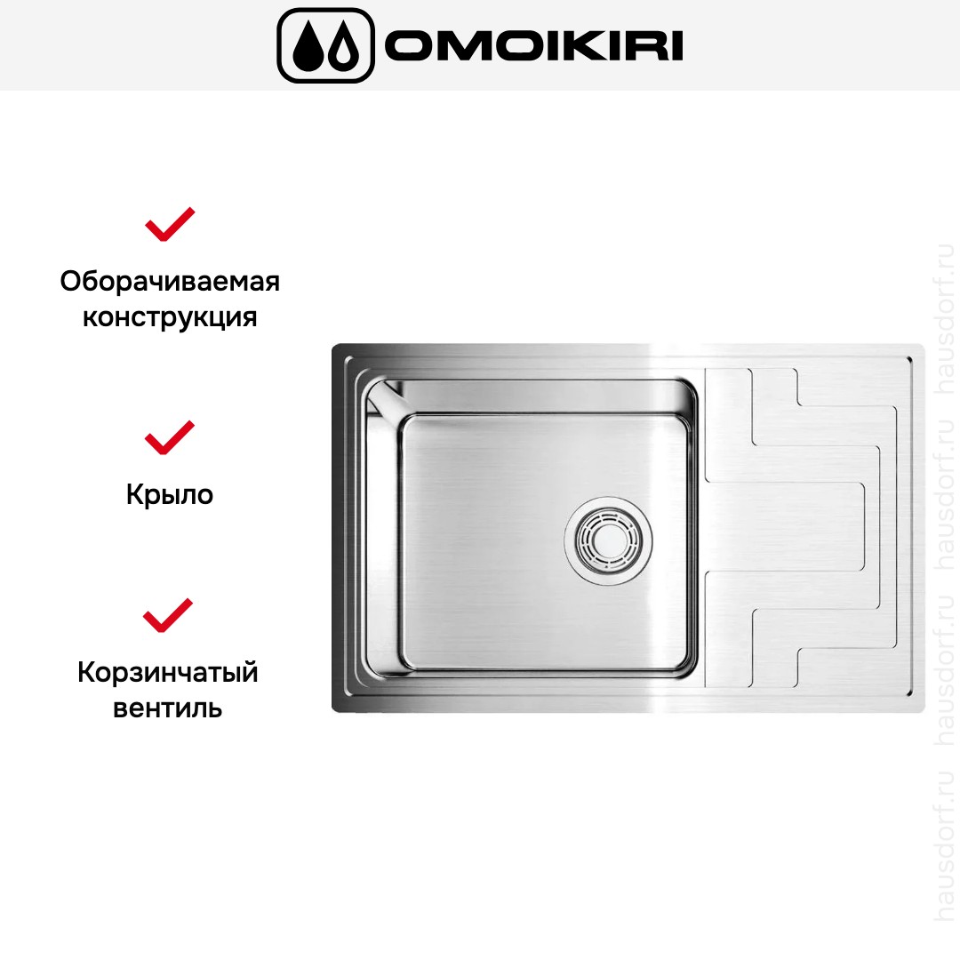 Обратите внимание на дизайнерские отличия мойки Омойкири, которые помогут в создании идеальной кухни в вашем доме. Она выполнена в цвете нержавеющая сталь. Основной материал — нержавеющая сталь, он гарантирует надежность и долгие годы службы без повреждений. Крыло, расположенное слева или справа, является дополнительным рабочим пространством, на котором можно сушить посуду, разделывать мясо и нарезать овощи.
