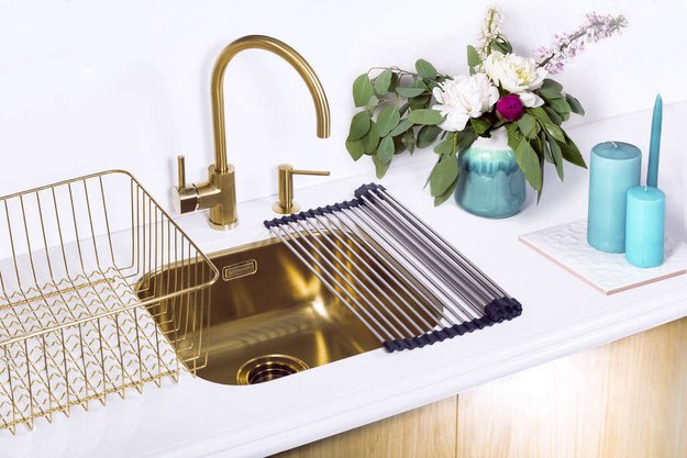 Обратите внимание на дизайнерские отличия мойки Омойкири, которые помогут в создании идеальной кухни в вашем доме. Она выполнена в цвете латунь. Основной материал — нержавеющая сталь, он гарантирует надежность и долгие годы службы без повреждений.