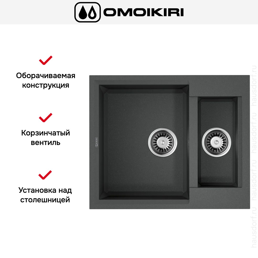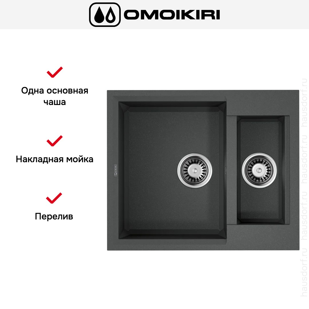 Накладная мойка Omoikiri — отличный выбор для тех, кто хочет создать гармоничное пространство с удобной сантехникой. простой в установке. Преимущество такой конструкции: легко подобрать практически к любой кухне и не придется демонтировать вместе с тумбой при ремонте или перестановке остальной мебели. Данная модель имеет стандартную форму, поэтому подходит большинству пользователей. Устанавливается над столешницей: это самый простой способ монтажа, зачастую с ним можно справиться даже без специалистов, главное — правильно рассчитать размеры ниши.