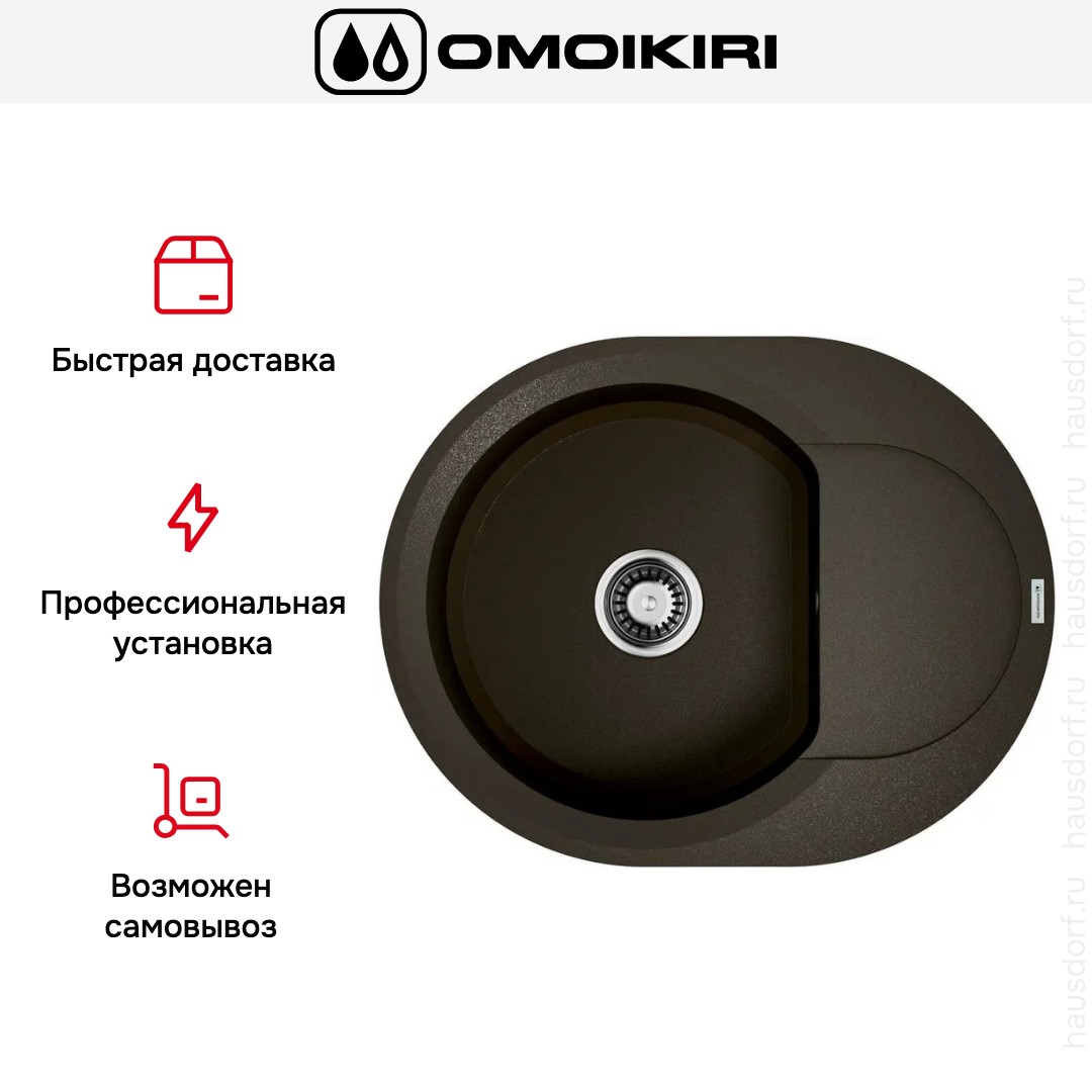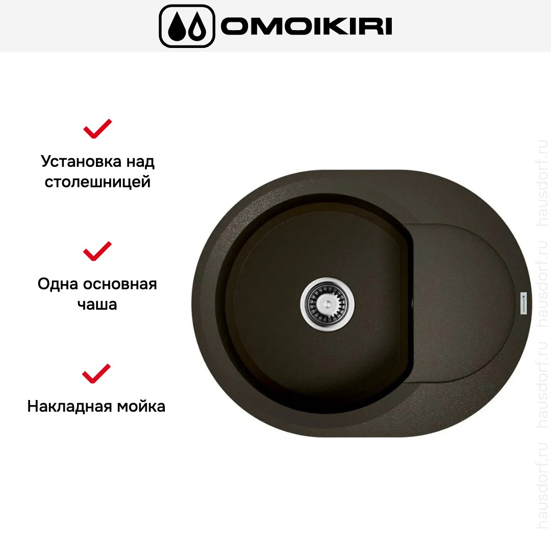 Накладная мойка Omoikiri — отличный выбор для тех, кто хочет создать гармоничное пространство с удобной сантехникой. простой в установке. Преимущество такой конструкции: легко подобрать практически к любой кухне и не придется демонтировать вместе с тумбой при ремонте или перестановке остальной мебели. Данная модель имеет скругленный контур, поэтому выбор тумбочки для нее потребует дополнительного внимания. Устанавливается над столешницей: это самый простой способ монтажа, зачастую с ним можно справиться даже без специалистов, главное — правильно рассчитать размеры ниши.