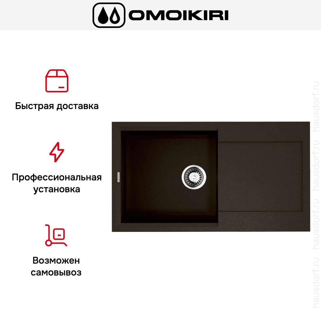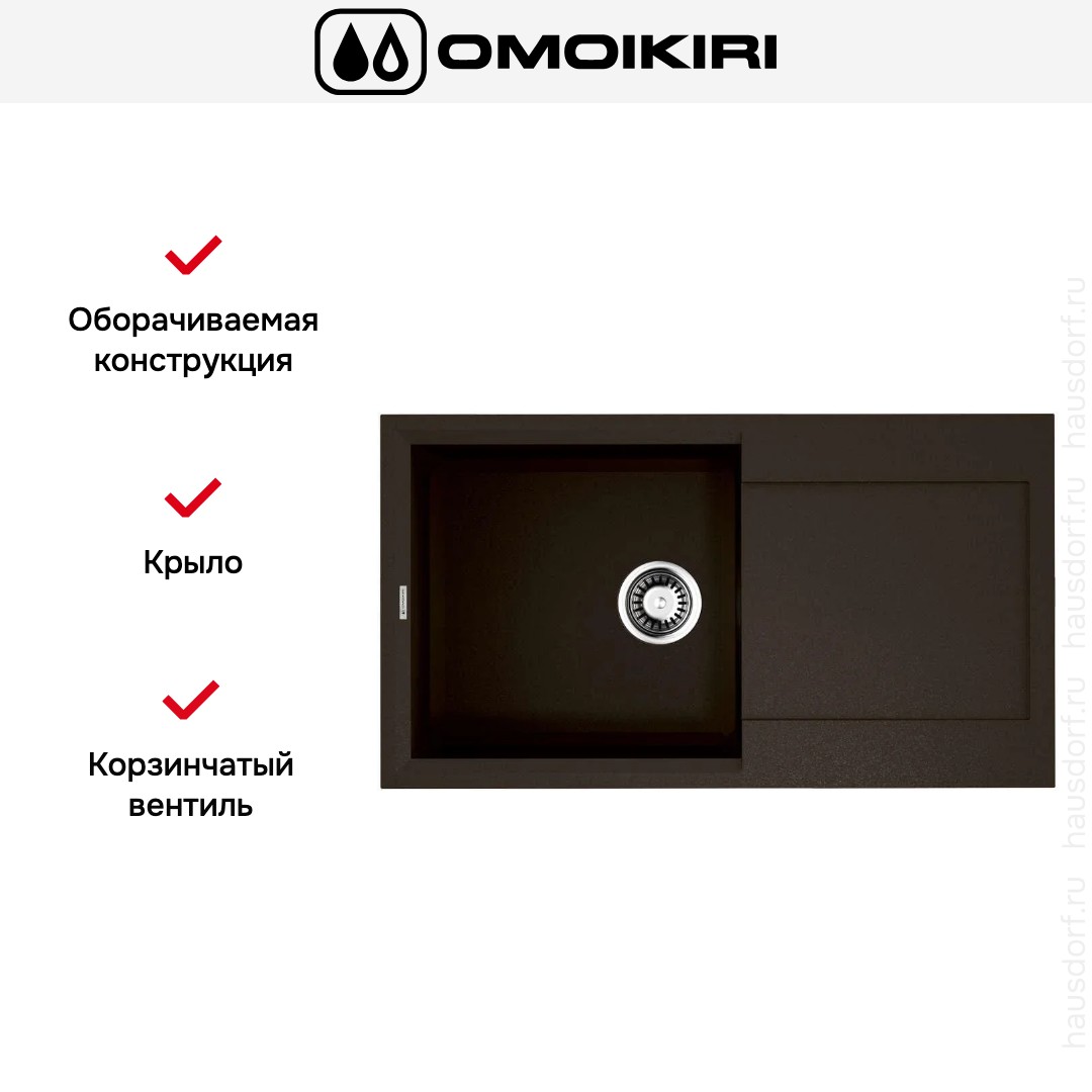 Обратите внимание на дизайнерские отличия мойки Омойкири, которые помогут в создании идеальной кухни в вашем доме. Она выполнена в цвете темный шоколад. Крыло, расположенное слева или справа, является дополнительным рабочим пространством, на котором можно сушить посуду, разделывать мясо и нарезать овощи.