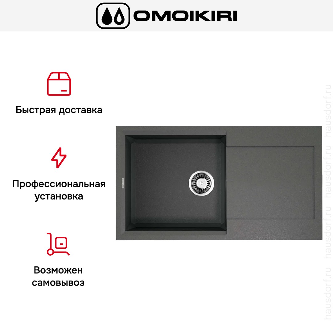 Накладная мойка Omoikiri — отличный выбор для тех, кто хочет создать гармоничное пространство с удобной сантехникой. простой в установке. Преимущество такой конструкции: легко подобрать практически к любой кухне и не придется демонтировать вместе с тумбой при ремонте или перестановке остальной мебели. Данная модель имеет стандартную форму, поэтому подходит большинству пользователей. Устанавливается над столешницей: это самый простой способ монтажа, зачастую с ним можно справиться даже без специалистов, главное — правильно рассчитать размеры ниши.