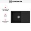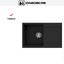 Корпус выполнен из материала TetoGranit. Метод производства — литье: в процессе формируется форма заданных размеров и геометрии. Толщина материала составляет 10 мм, масса изделия — 8.3 кг, что придает конструкции вес и устойчивость на основании. Цвет — черный, поэтому изделие легко сочетается с контрастными и темными столешницами, не перетягивая внимание и поддерживая общий стиль кухни. В комплект входят корзинчатый вентиль и сифон, а также крепления для монтажа — для подключения слива и надежной фиксации раковины.