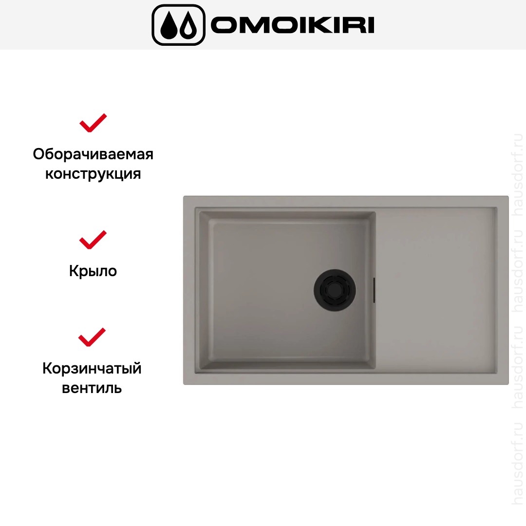 Обратите внимание на дизайнерские отличия мойки Омойкири, которые помогут в создании идеальной кухни в вашем доме. Она выполнена в цвете Серый Ленинград. Крыло, расположенное является дополнительным рабочим пространством, на котором можно сушить посуду, разделывать мясо и нарезать овощи.