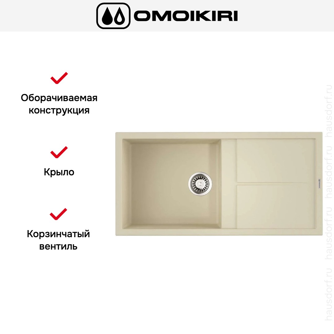 Обратите внимание на дизайнерские отличия мойки Омойкири, которые помогут в создании идеальной кухни в вашем доме. Она выполнена в цвете ваниль. Крыло, расположенное является дополнительным рабочим пространством, на котором можно сушить посуду, разделывать мясо и нарезать овощи.