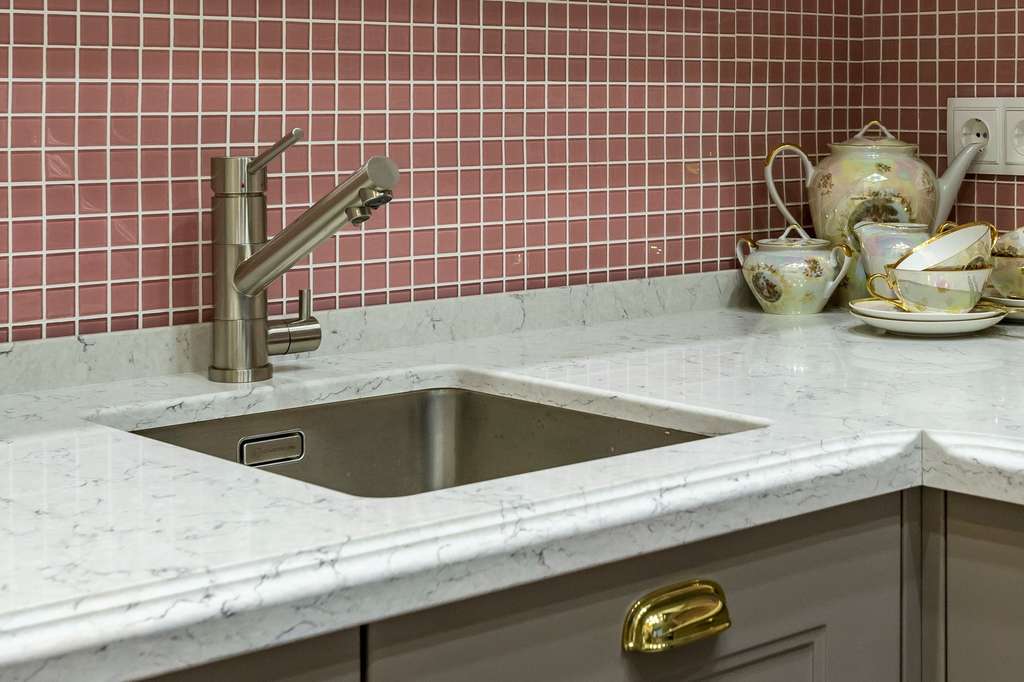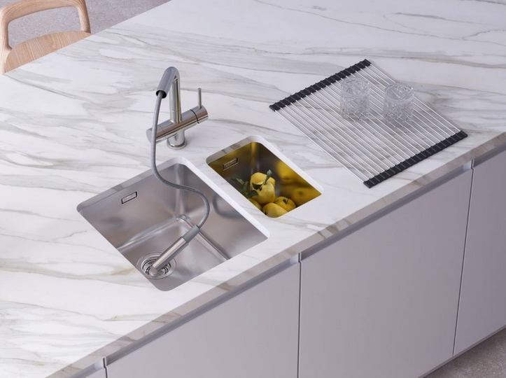 вровень со столешницей — создается ощущение бесшовного пространства, а если мойка сделана из того же материала, то и единого дизайна;
