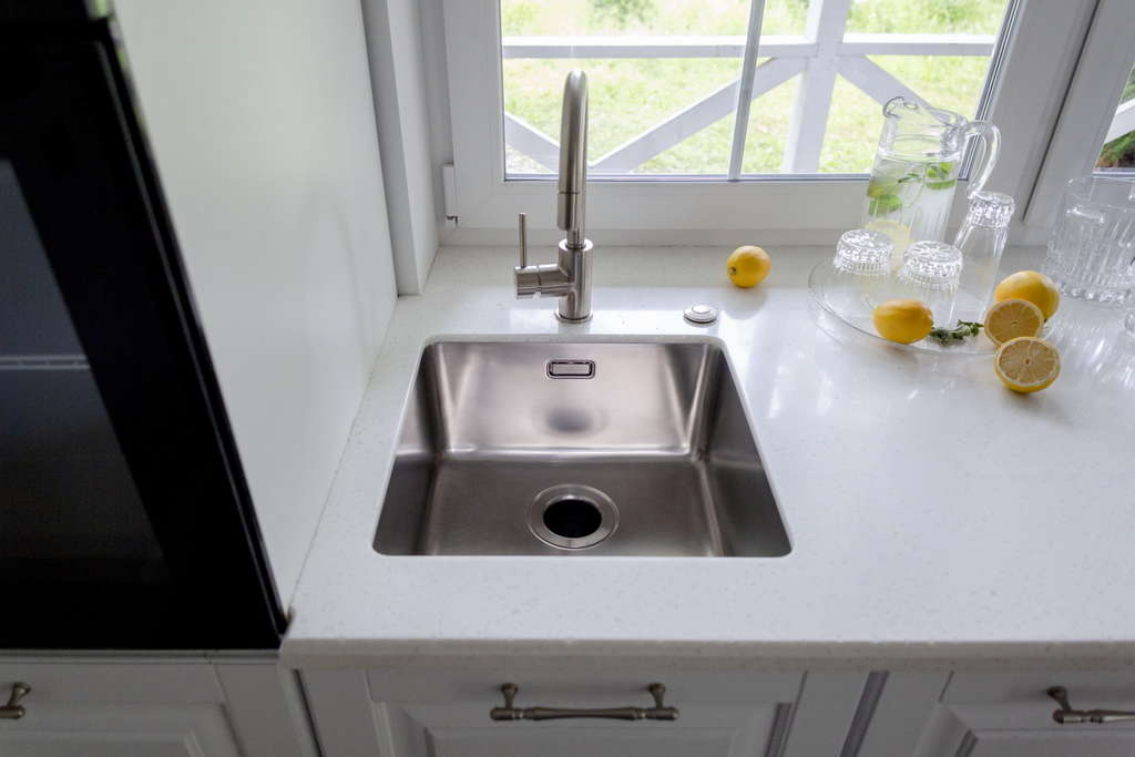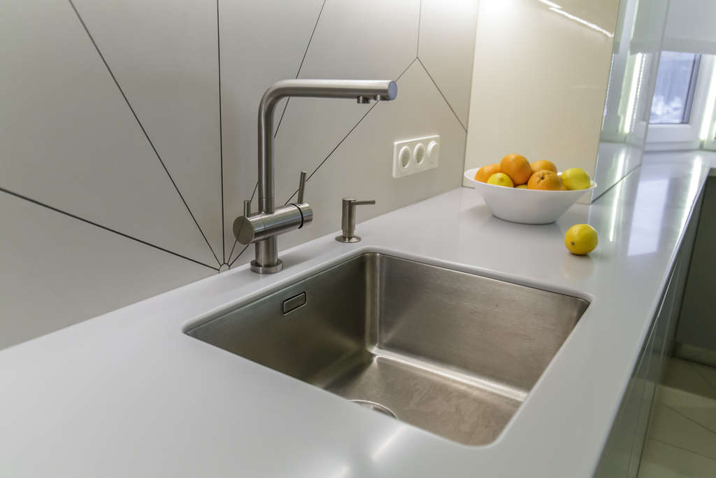 вровень со столешницей — создается ощущение бесшовного пространства, а если мойка сделана из того же материала, то и единого дизайна;