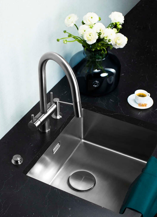Мойка с одной чашей — классический вариант, который привычен пользователям. Вариации этой конструкции — мойка с одной основной и одной дополнительной чашей, с аксессуарами (например, коландером), с крылом. Стандартная глубина таких моделей — 15-20 см, чтобы внутри поместилась посуда или продукты, а брызги не попадали вне.
