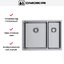 Габариты изделия 58×44 см оптимальны для компактных и стандартных столешниц, при этом рабочая зона остается удобной. Основная чаша размером 34×40 см и глубиной 20 см подходит для мытья кастрюль и большой посуды. Дополнительная чашка 18×40 см с глубиной 15 см служит для ополаскивания, подготовки продуктов или слива воды. Наличие перелива защищает от случайного переполнения и помогает поддерживать порядок на кухне. Радиус скругления 1 см облегчает удаление остатков пищи и делает мытье углов более эффективным.