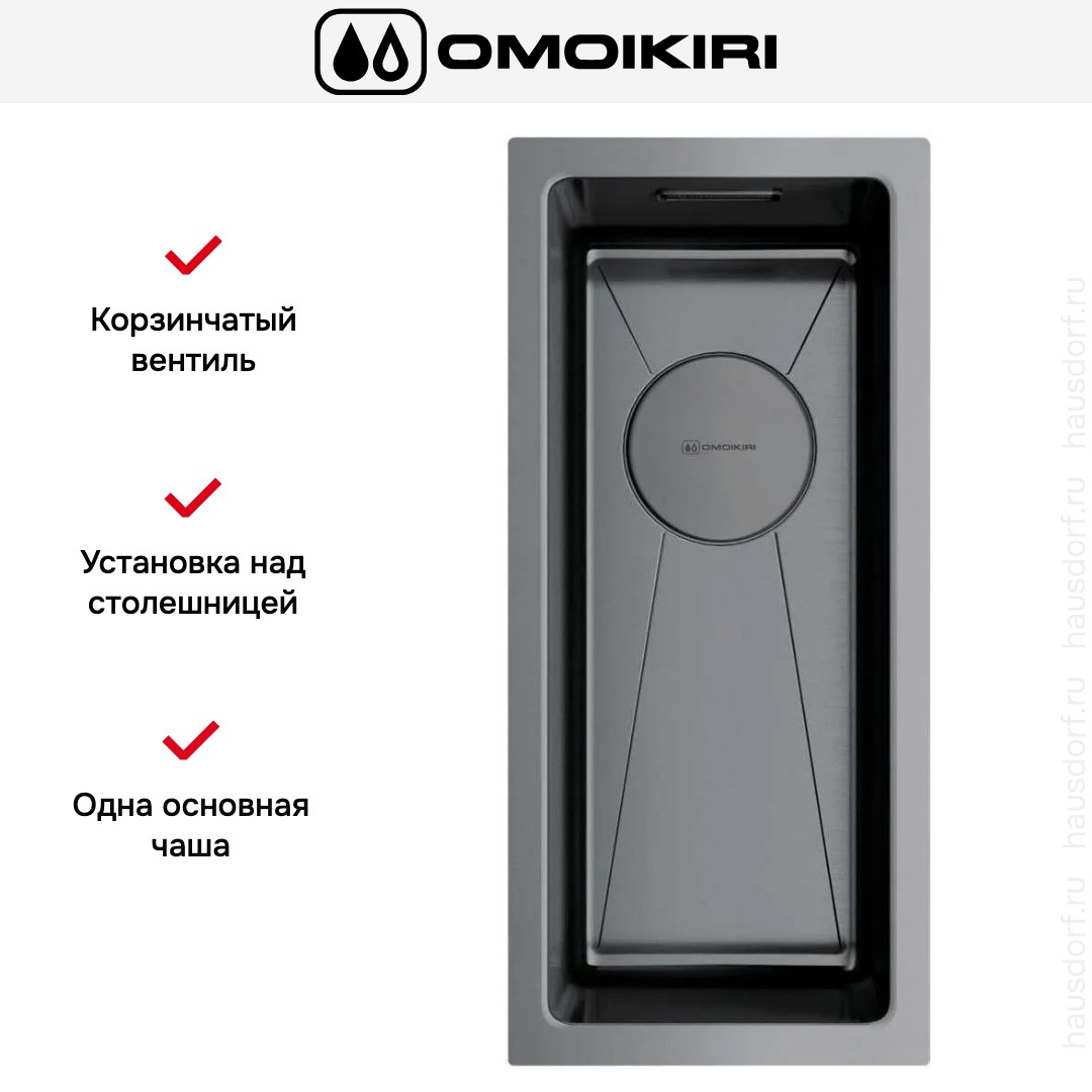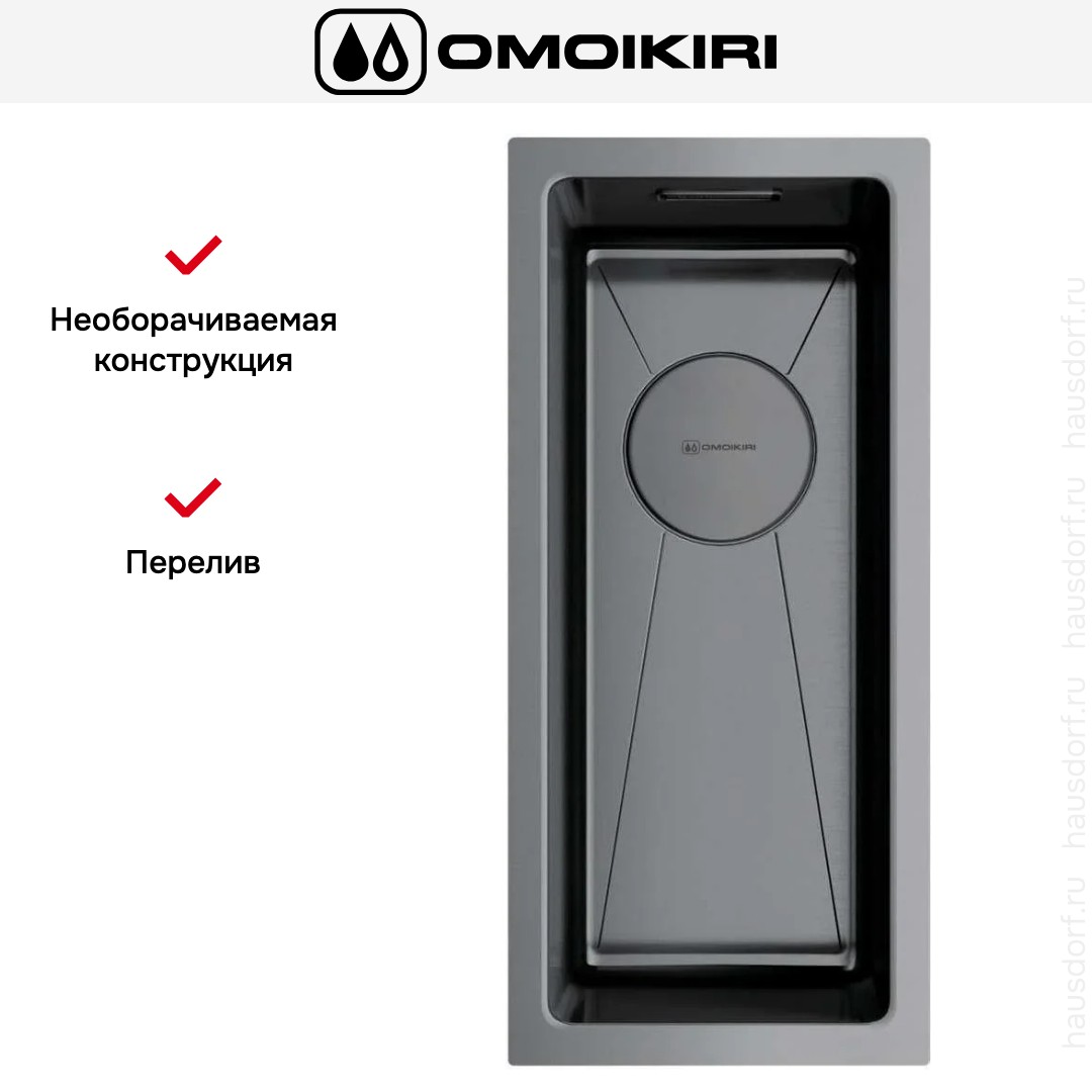 Обратите внимание на дизайнерские отличия мойки Омойкири, которые помогут в создании идеальной кухни в вашем доме. Она выполнена в цвете вороненая сталь. Основной материал — нержавеющая сталь, он гарантирует надежность и долгие годы службы без повреждений.